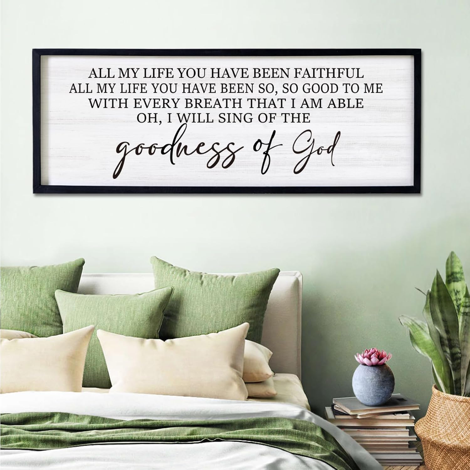 Goodness of God Framed Wall Art, 40''×15'' Positive Religious Black Bible Verse for Christian God Jesus Christ Prayer, Vintage Rustic Long Holy Catholic Scripture Decor