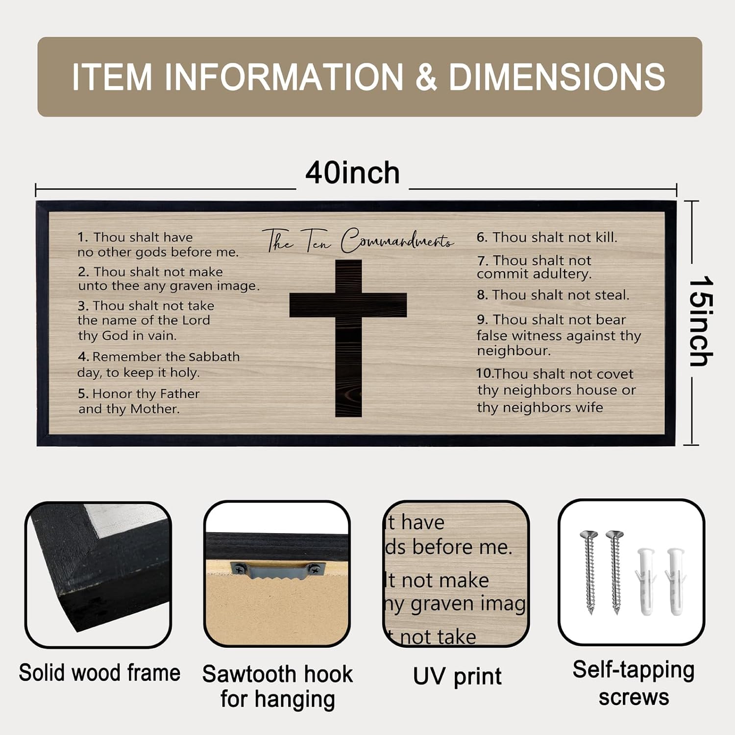 - 【Encouraging Words】The Ten Commandments large hanging wood sign adopt minimalist letters on the white background, showing constant reminder of faith and devotion in any setting and you passion for god, adding a touch of elegant, and classic beauty to your space and giving people a calming feeling.
