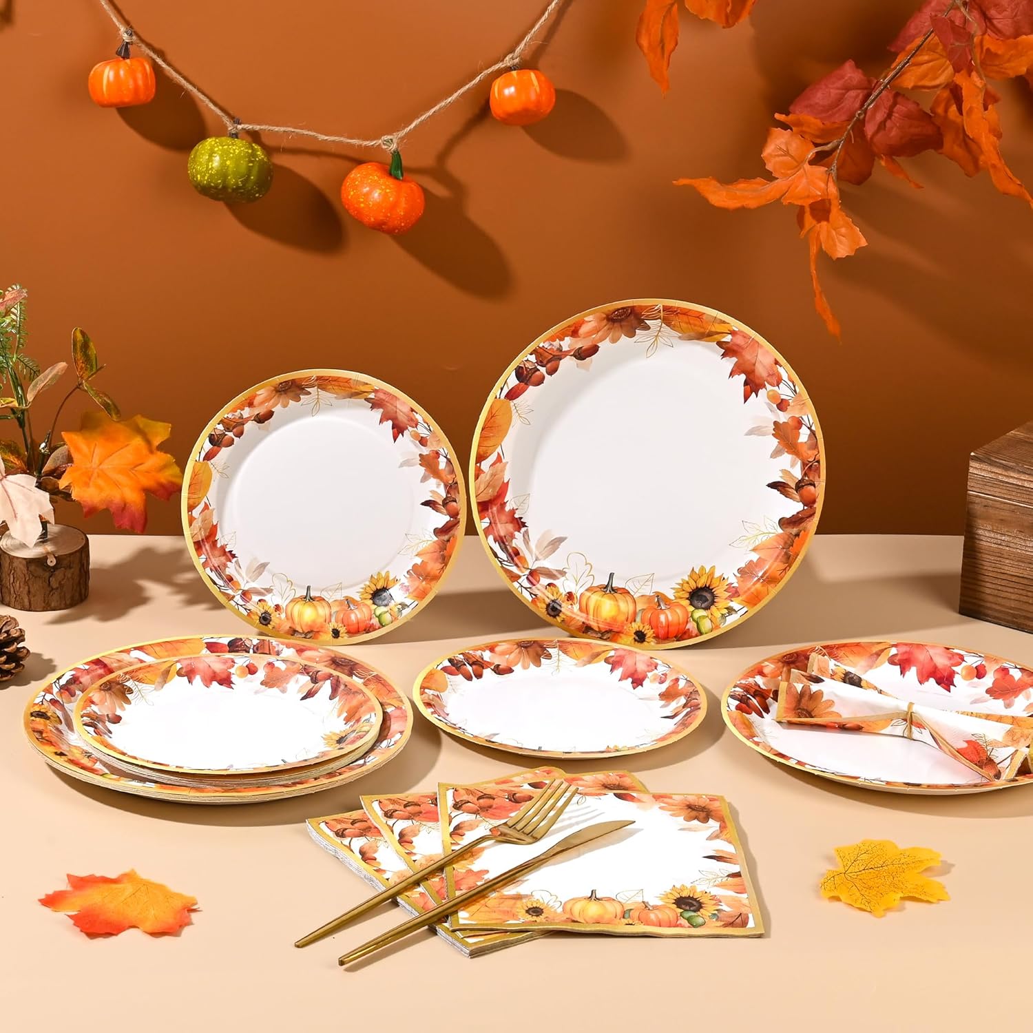 - Color : 150Pcs Fall Paper Plates and Napkins Party Supplies