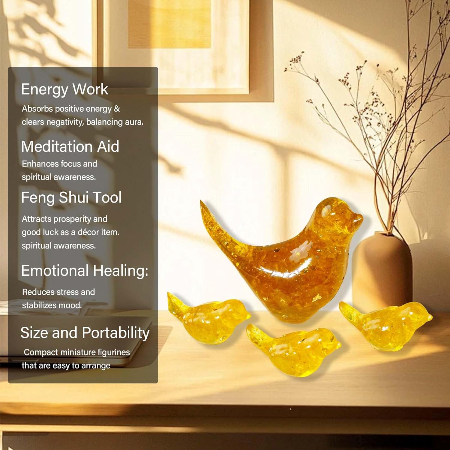 Crystal Bird Figurines, Resin Animal Statues, Miniature Decorative Gravel Birds, Home Decor (4PCS-Citrine)