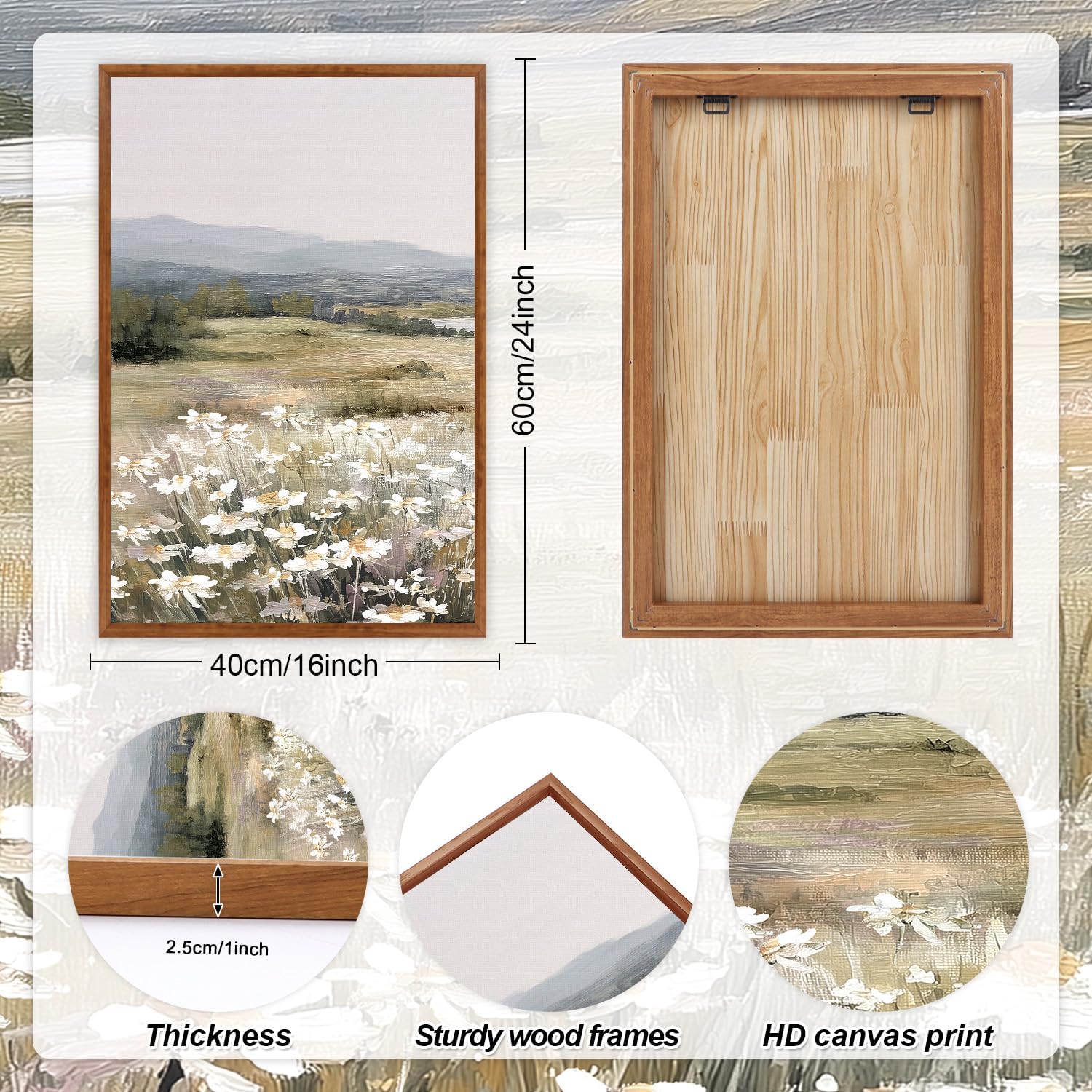 - 【Easy To Hang】Each wildflower canvas wall painting measures 16X24 inches (40X60 cm) and is wrapped in a PS frame with a hanging piece,making it easy to hang.Just use the built-in nails to fix it in the appropriate position on the wall
