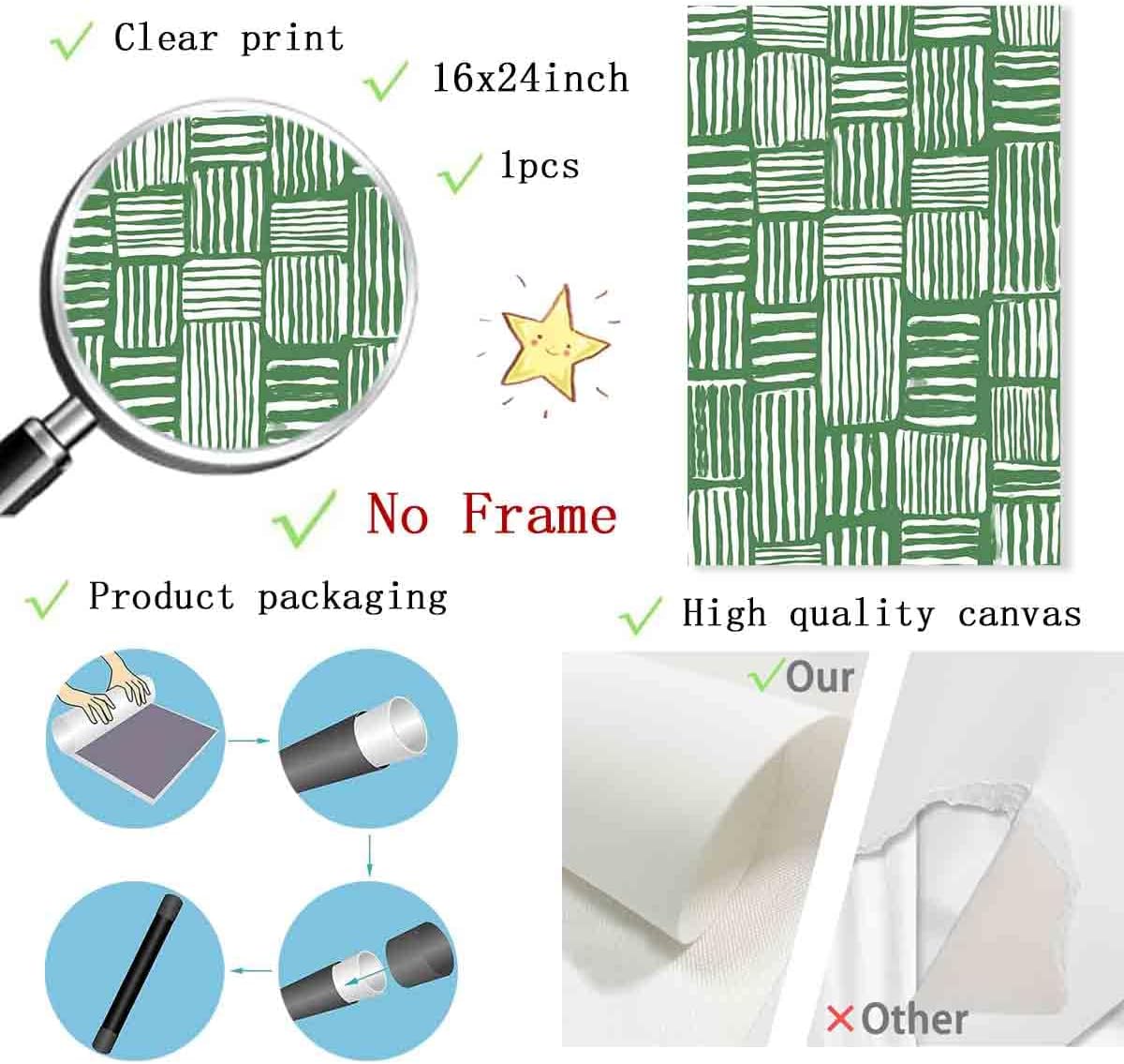 - 1.Canvas wall art specifications:Size:16X24inch,frameless,high-definition canvas wall art prints,printing pictures on canvas,using high-quality environmentally friendly ink,not easy to fade. The colors are beautiful and shiny,high-definition Giclee modern canvas print artwork.