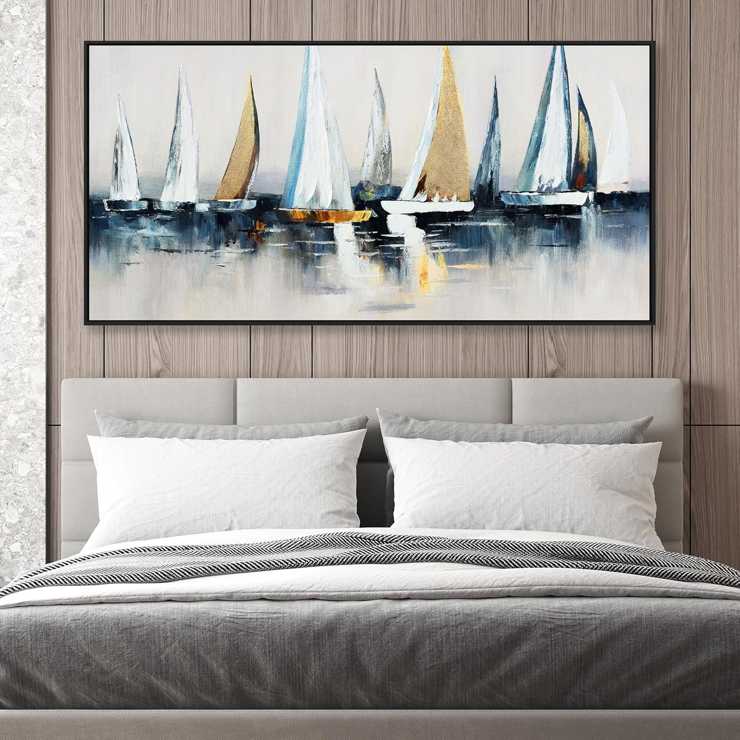 Canvas Wall Art Abstract Wall Decor Sailboat Picture Framed Artwork Modern Aesthetic Suitable for Living Room Bedroom and Office Home Wall Decor 20"x40"