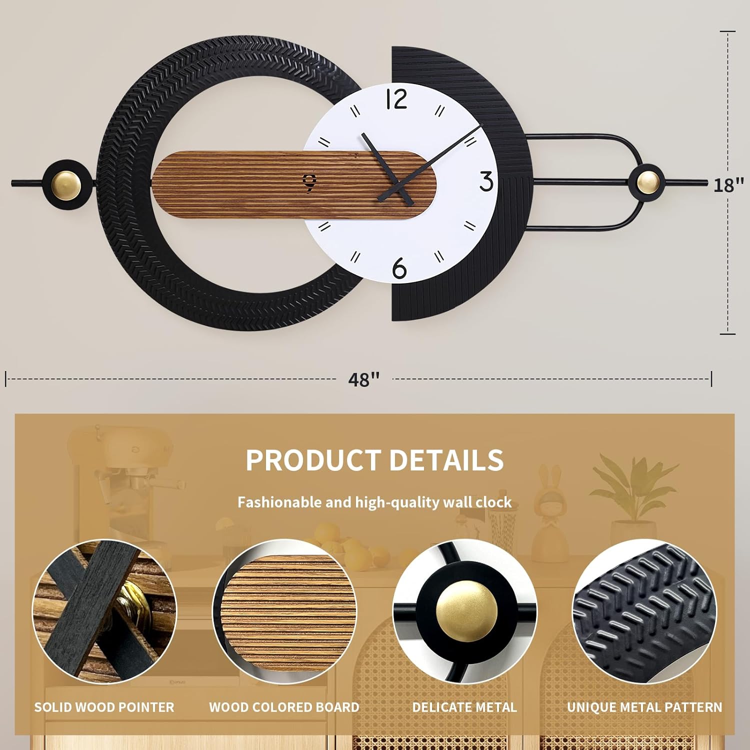 - ✅ Oversized Statement Piece-This 48x18 inch large battery operated wall clock stands out as a bold decorative feature, perfect for making a stylish statement in spacious rooms, hallways, or entryways.