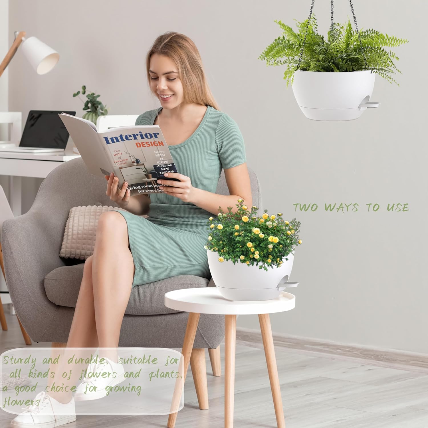 - 【Minimalist Modern Design】Trendy Colors and a Modern look allow this decorative Pot to fit into any Indoor and Outdoor setting. these 12" Hanging Pots offer generous space for your greenery. Good for creating eye-catching botanical arrangements