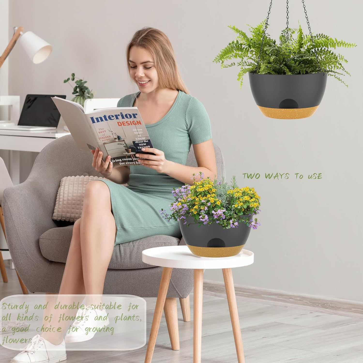 - 【Minimalist Modern Design】Trendy Colors and a Modern look allow this decorative Pot to fit into any Indoor and Outdoor setting. these 12" Hanging Pots offer generous space for your greenery. Good for creating eye-catching botanical arrangements
