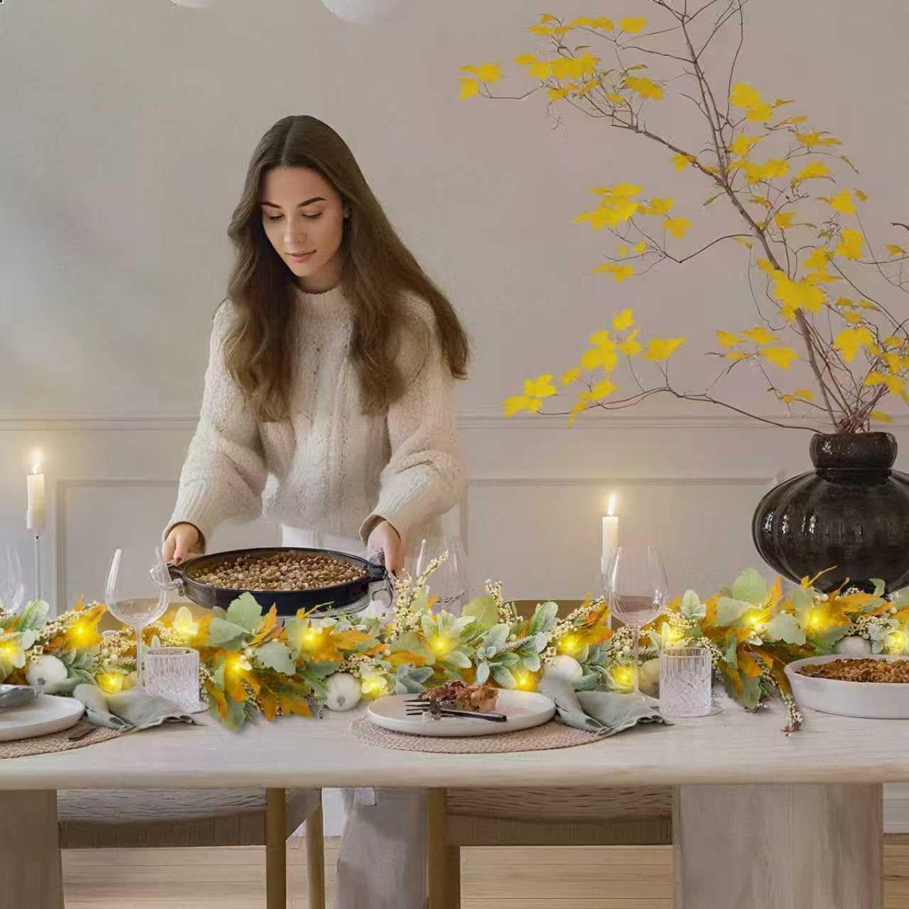 Fall Mantel Garland Decor for Home - 6 Ft Autumn Leaves Table Garlands with Lights Decorations for Thanksgiving and Halloween Leaf Centerpieces for Bedroom Tables Stair Porch Outdoor Farmhouse