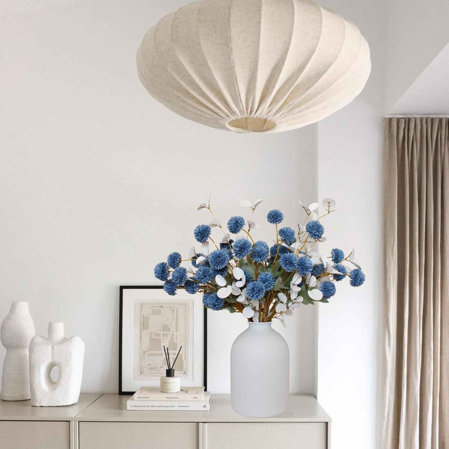 - Stylish Faux Mums for Home Decor - These fake mums artificial flowers in dusty blue and white, with long stems for tall vases, are perfect flower balls for centerpieces, silk flower centerpieces or blue flower decor. Great for floral balls for centerpieces or DIY flowers, they enhance any room, from dining tables to entryways, with a timeless blue floral aesthetic.