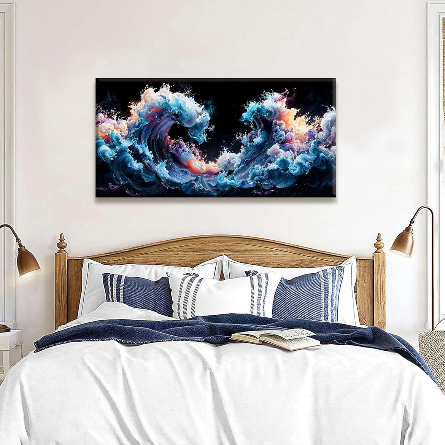 QSQ Abstract Wall Art Colorful Waves Canvas Art Wall Decor Artwork Abstract Wall Decor Modern Minimalist Canvas Painting Bathroom Picture For Bedroom Office Home Wall Decoration 20" X 40"