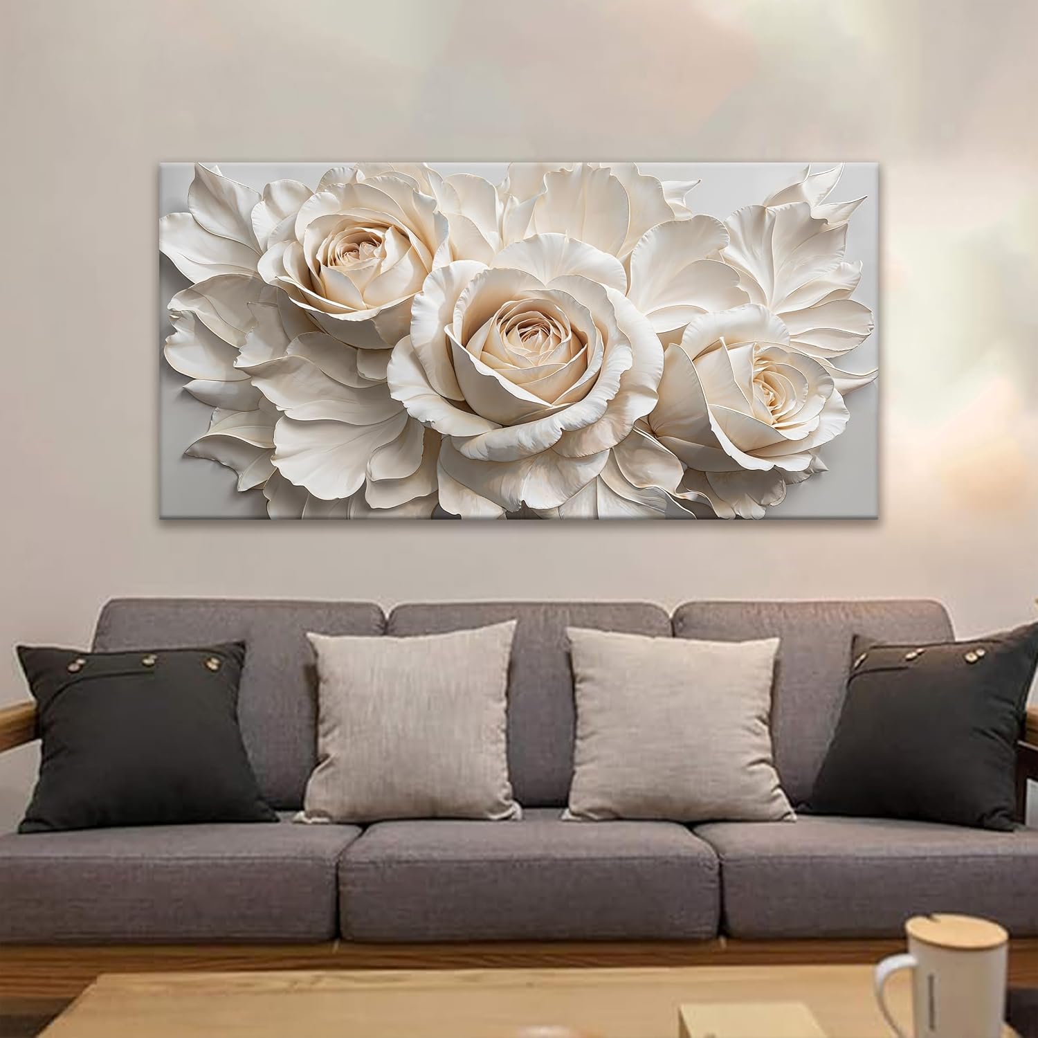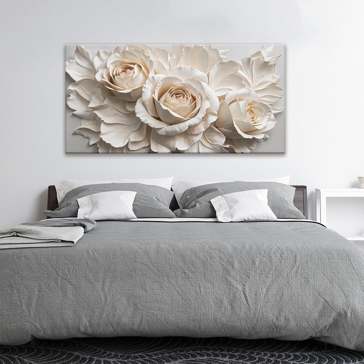 QSQ Wall Art For Living Room White Flower Wall Art Modern Canvas Art Wall Decor Home Wall Decor Suitable Flower Pictures For Bedroom Apartment Office Decoration Can Be Hung 24" X 48"