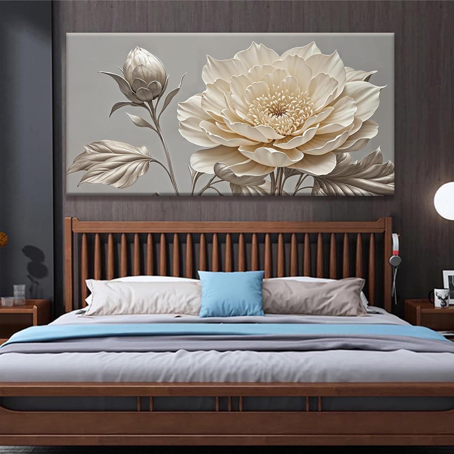 QSQ Large Wall Art Living Room Home Wall Decor Modern Canvas Art Wall Decor 29 X 58 Inches White Flower Wall Art Painting Print Elegant Silver White Flower Picture For Bedroom Office Artwork
