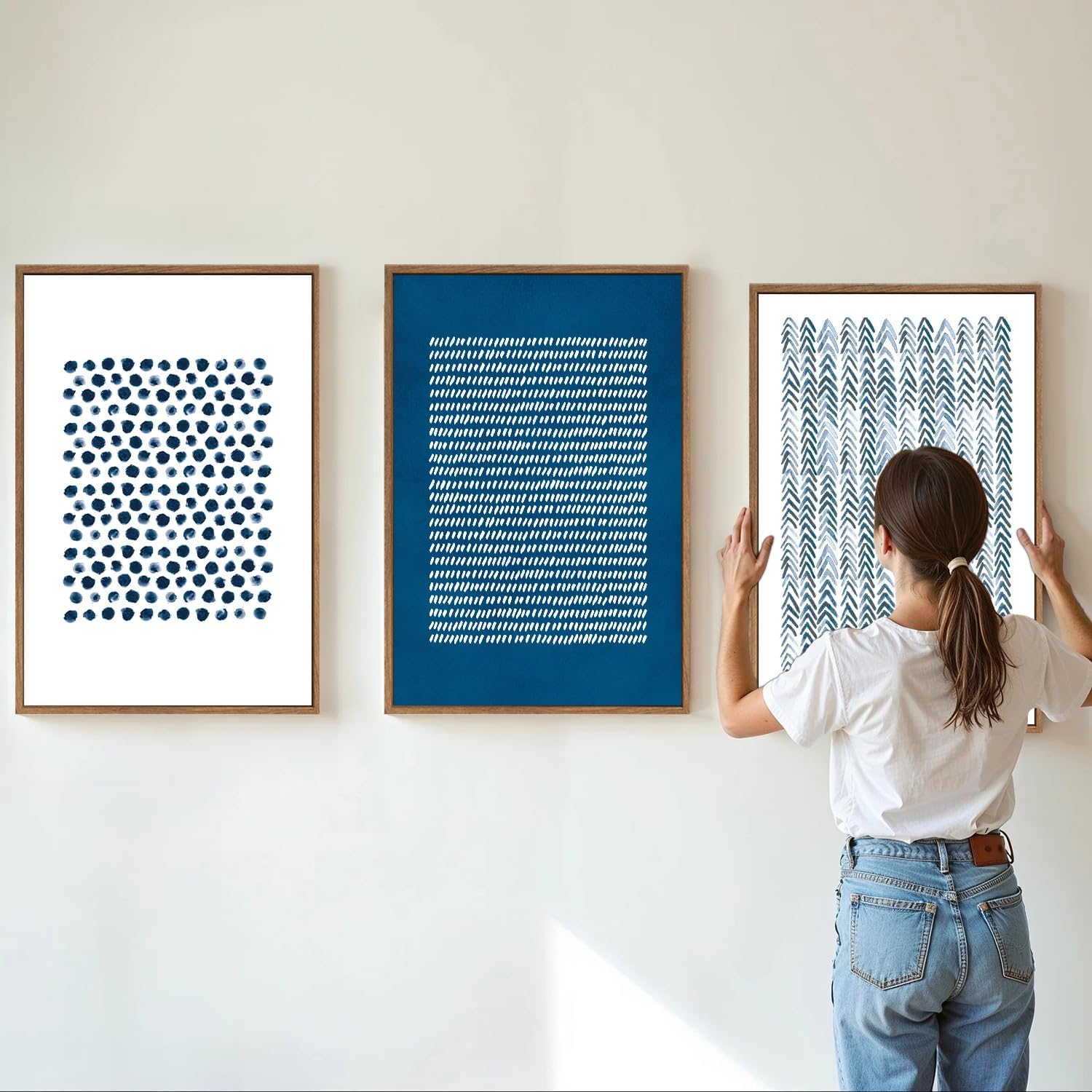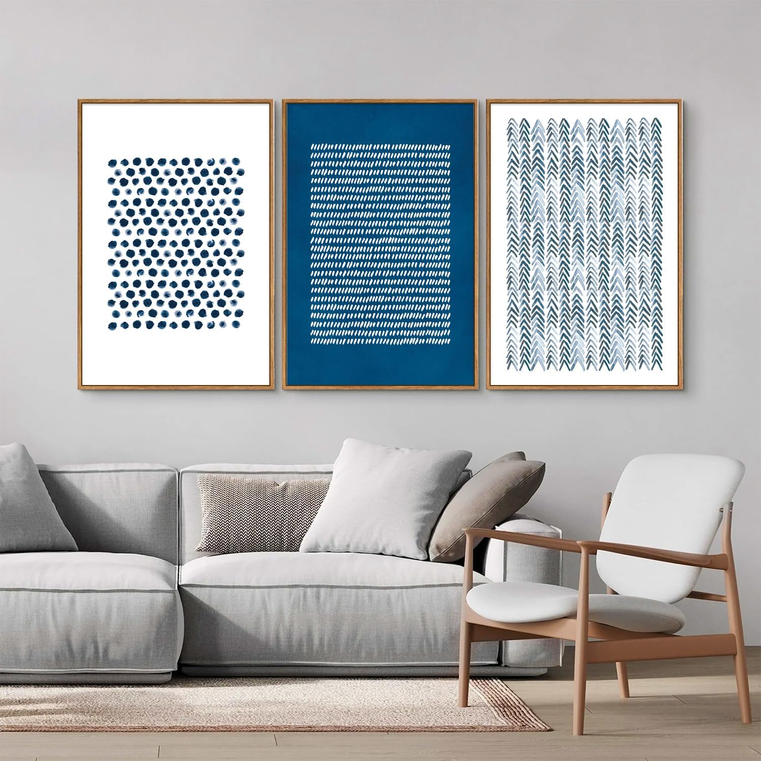 Tinonedraw Navy Blue and White Framed Canvas Wall Art Set, Minimalist Geometric Wall Decor, Neutral Abstract Artwork, Cozy Contemporary Art Prints for Bedroom Living Room Office Above Bed 24"x36"x3
