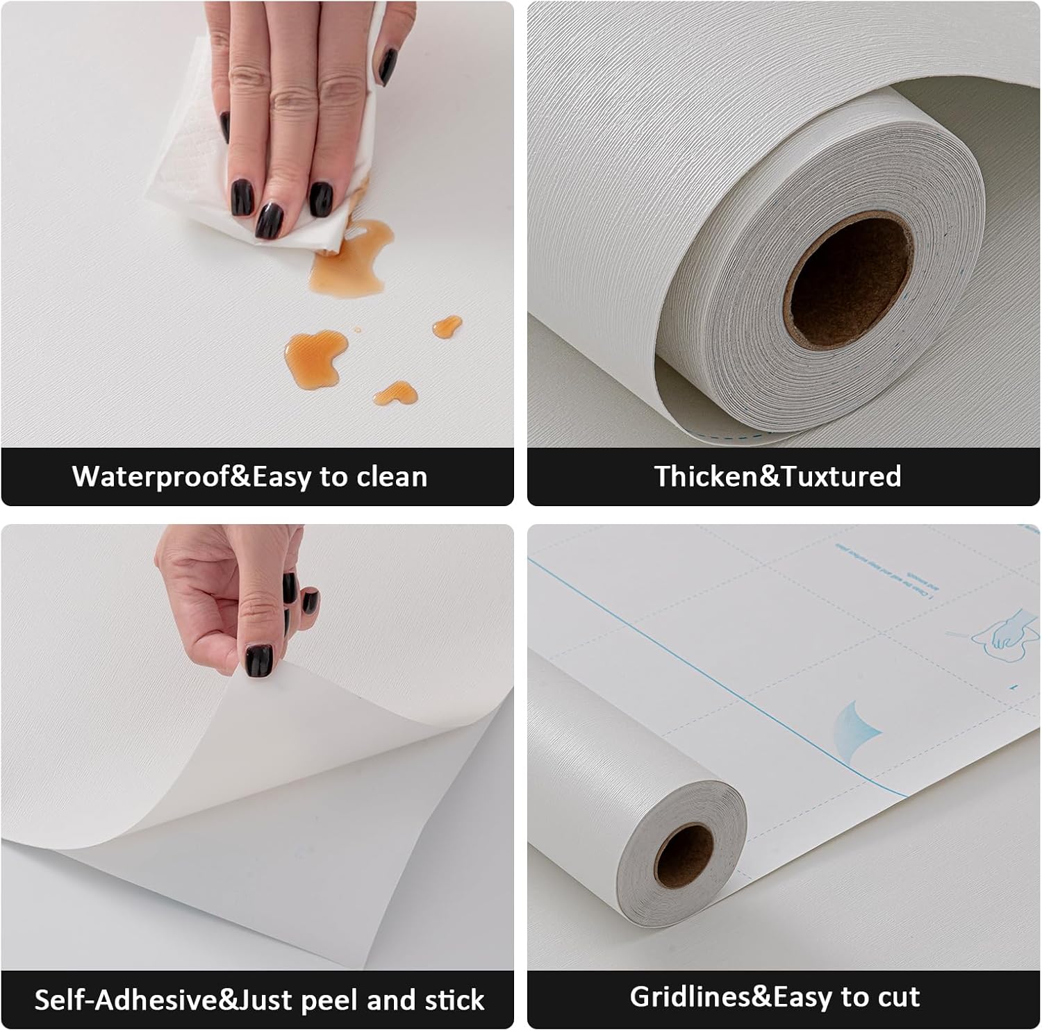 - FEATURES--Vinyl/pvc material. Thicker than normal wallpaper, full of real texture,self adhesive, easy to apply. Waterproof . Indoor use, ideal for most smooth flat surfaces such as bedroom,living room,cabinets,furniture,etc.