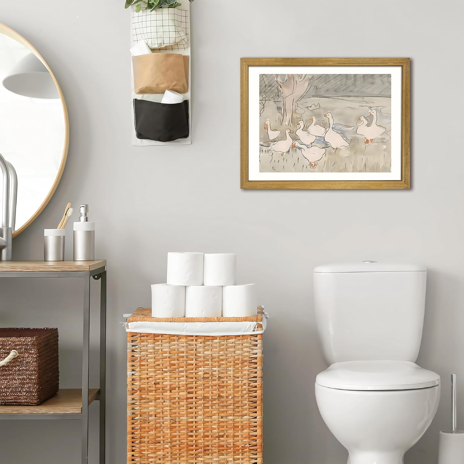 - Vintage Pastoral Aesthetic Wall Art – This charming Vintage Goose Wall Art features a soft watercolor painting of geese and ducks, bringing an old-world countryside charm to your interior. Its gentle lines and muted tones evoke calmness and rural nostalgia.