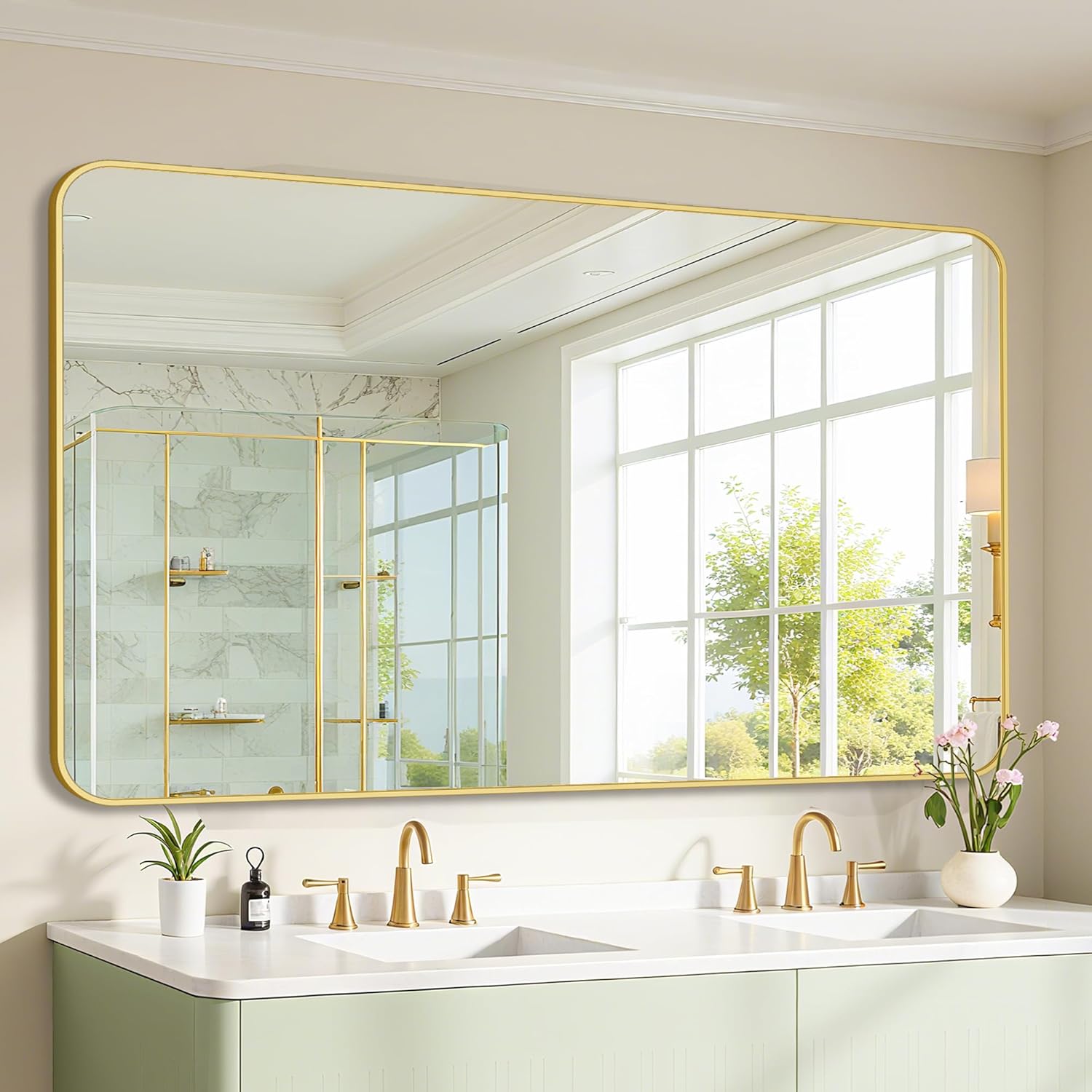 Bathroom Mirror 60" x 36", Large Rectangle Wall Mirror, Gold Metal Frame Wall Mounted Mirrors for Bathroom, Vanity, Bedroom, Entryway Decor(Horizontal/Vertical)