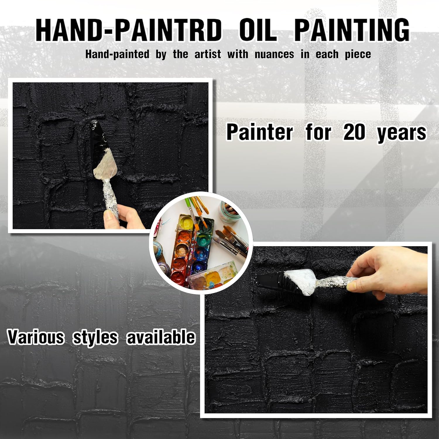 - 【Canvas Mural Size】Titled "Black Abstract" The Size is 40" x 20" Since each painting is hand-painted, the actual painting may differ slightly from the product image. Due to different monitor brands, the actual wall painting color may be slightly different from the product picture.