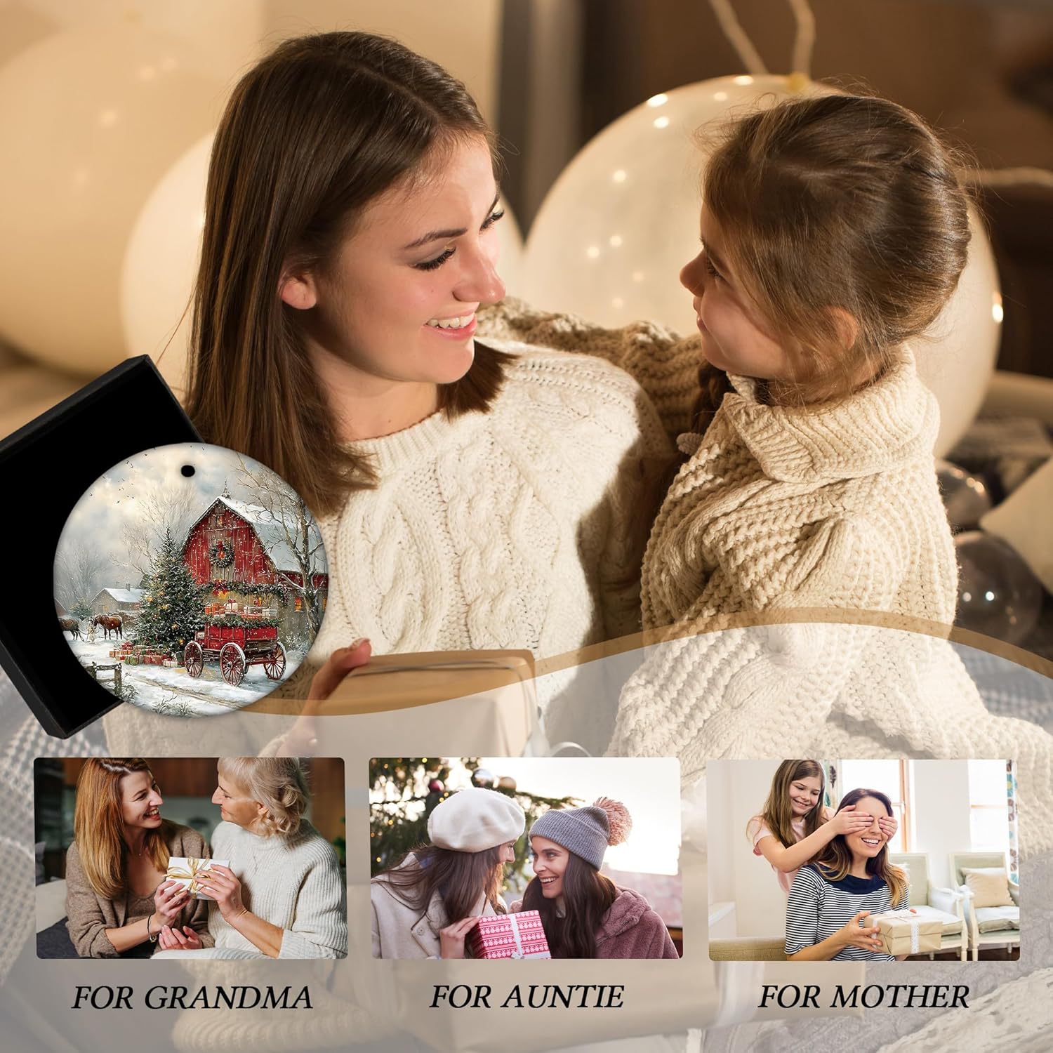 Vintage Christmas Ceramic Ornament Gifts, Retro Rustic Winter Christmas Countryside Decorative Hanging Ornaments for Xmas Tree Holiday Party Decoration, Winter Xmas Tree Decorations