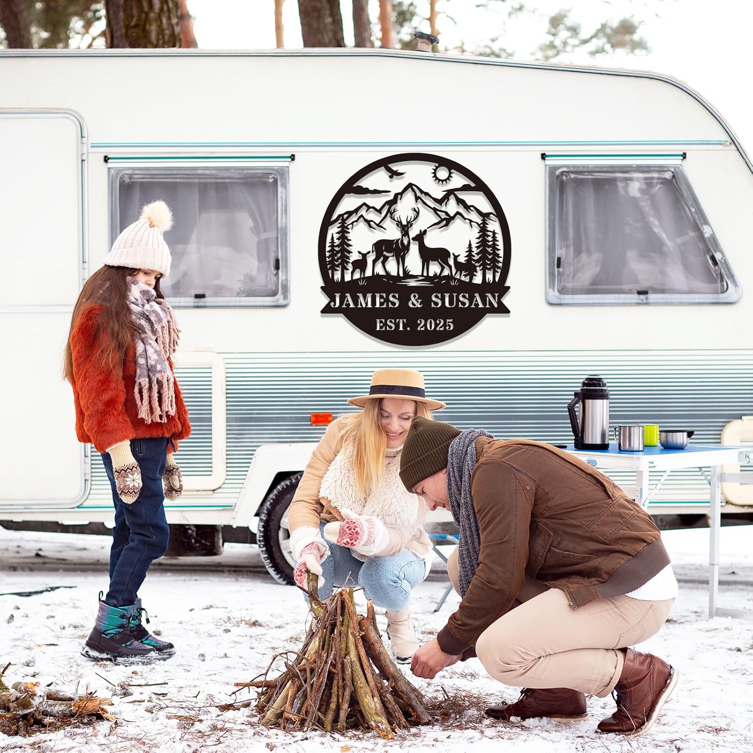 Personalized Rustic Metal Deer Cabin Sign, Outdoor Welcome Sign for Front Porch, Great Custom Metal Name Sign Gift for Hunters, Farmhouse Cabin Decor