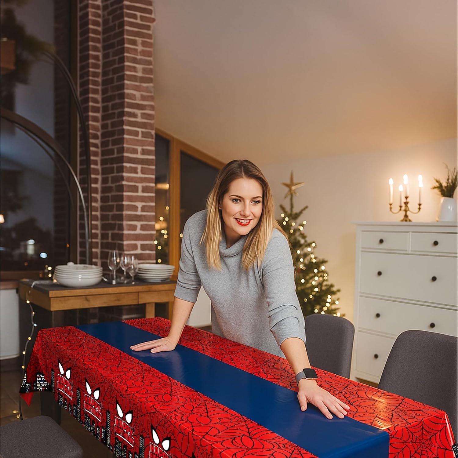 16Pcs 2in1 Spider Birthday Decorations Tablecloths, 54" x 108" Super Hero Spider Table Cloth Disposable Rectangle Plastic Table Cover for Boys Birthday Party Supplies