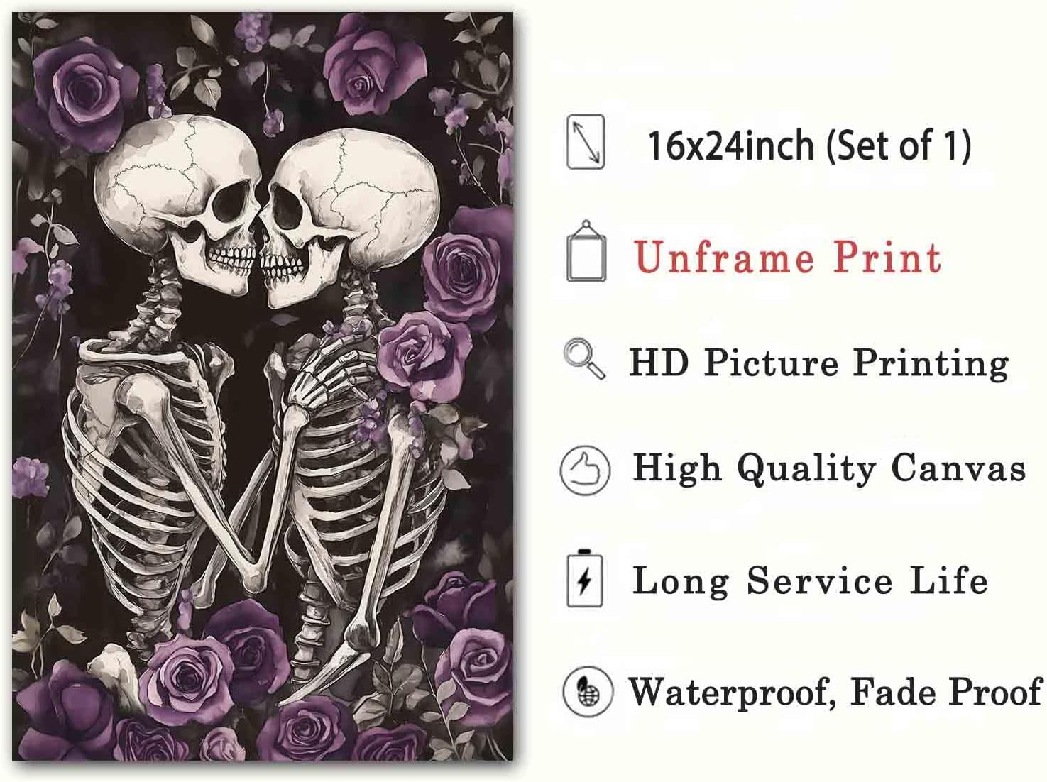 Gothic Skull Wall Art Skeleton Lover Poster Gothic Skull Wall Art Vintage Skeleton Print Horrible Posters Kissing Poster Dark Moody Paintings Dark Academia Canvas Living Room Decor 16x24inch No Frame