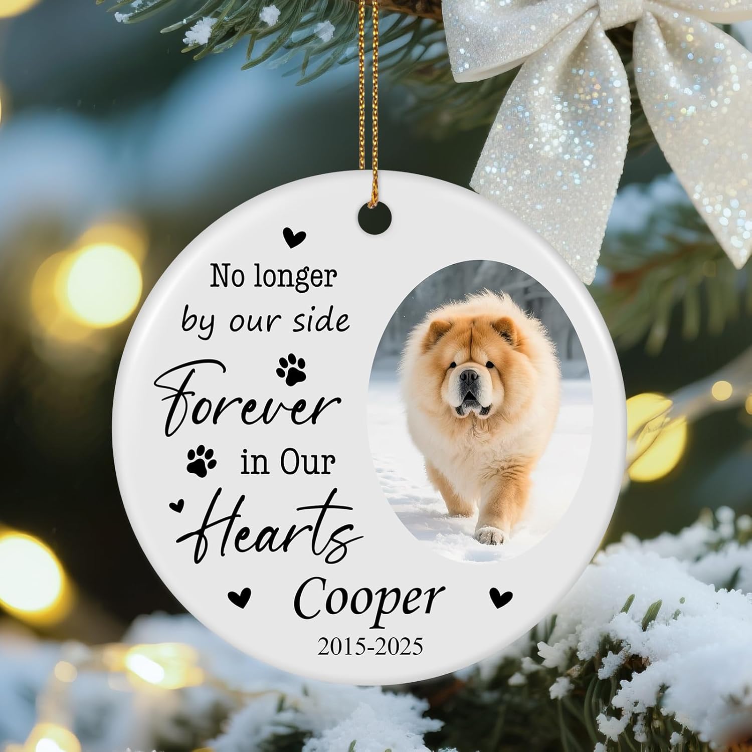 - CUSTOMIZED PET MEMORIAL ORNAMENT: Personalize a tribute to your furry friend with a custom ornament featuring their photo, name, and years. Create a unique keepsake honoring the special moments shared with your beloved pet.