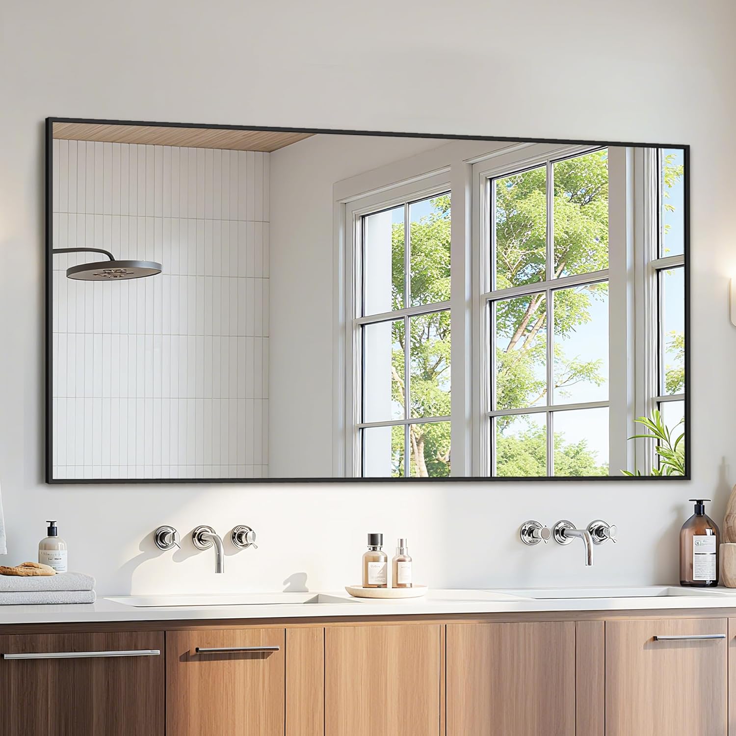 Bathroom Mirror 60" x 30", Large Rectangle Wall Mirror, Black Metal Frame Wall Mounted Mirrors for Bathroom, Vanity, Bedroom, Entryway Decor(Horizontal/Vertical)