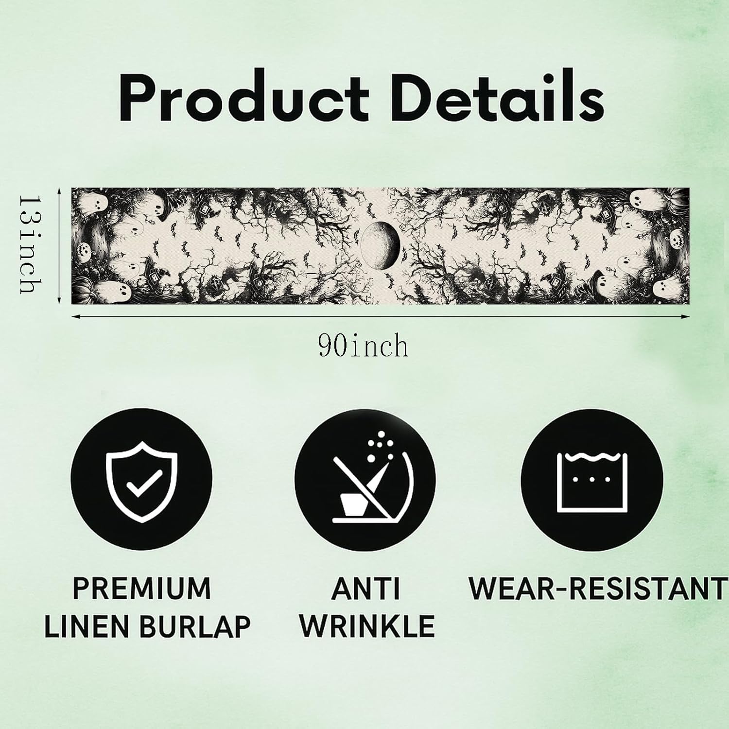 GPGHE Halloween Table Runner Black Ghost Holiday Burlap Table Decoration Indoor Outdoor Home Decor Party Supply 13 x 90 Inch