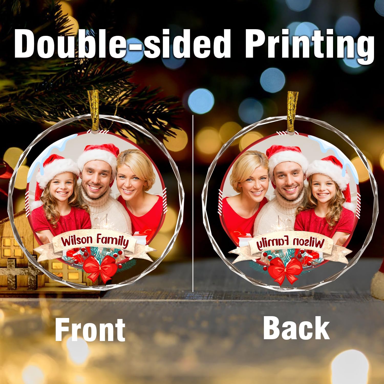 - 🎄Unique Double-sided Printing --- Ordinary crystal pendants are printed on one side, with only one side having your customized photo and text. Our crystal pendants are printed on both sides, with patterns and text no matter which side you look at them from.