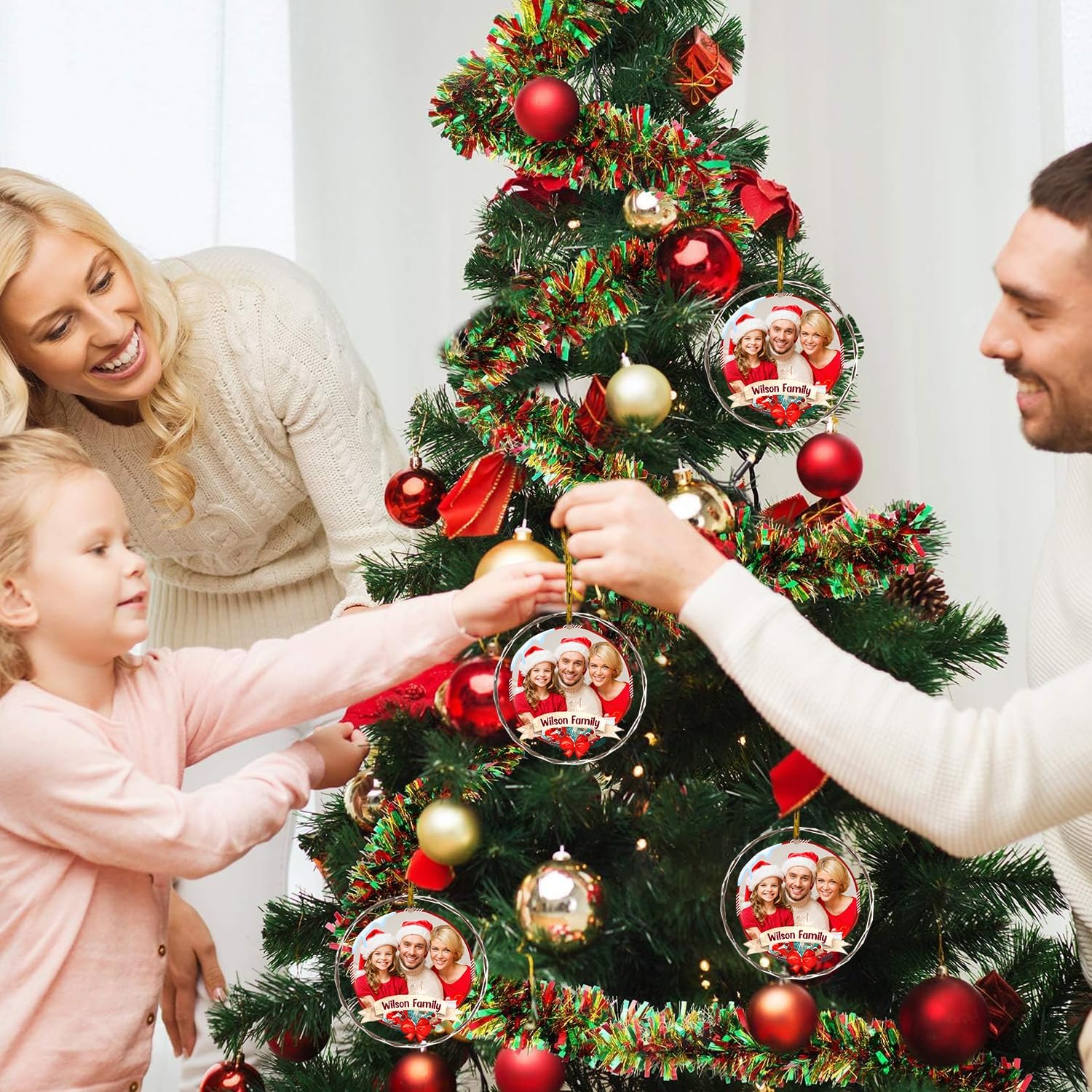 - 🎄Personalized Crystal Photo Ornaments --- Let your special memories live forever! You can add photo of yourself with your family, friends, or anyone close to you, along with any text you desire, to the crystal pendant, and we will customize it specifically for you.