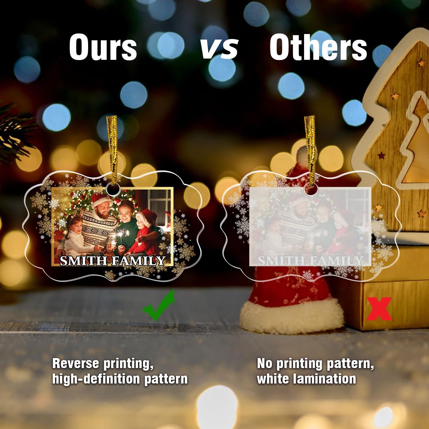 - 🎄Personalized Crystal Photo Ornaments --- Let your special memories live forever! You can add photo of yourself with your family, friends, or anyone close to you, along with any text you desire, to the crystal pendant, and we will customize it specifically for you.