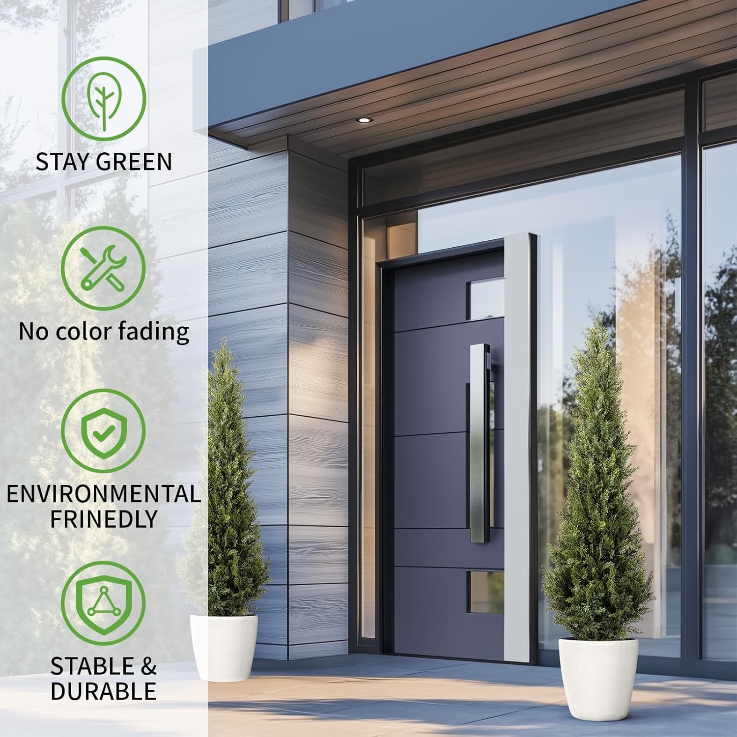 - 【No Assembly Required】These faux cypress trees no assembly required, just a little shape and fluff each branches after unboxing. We poured cement in the bottom of the pot, the pot is heavy enough to remain upright outside even with moderate winds or a storm. And it can be used year round and can be dressed up seasonally.