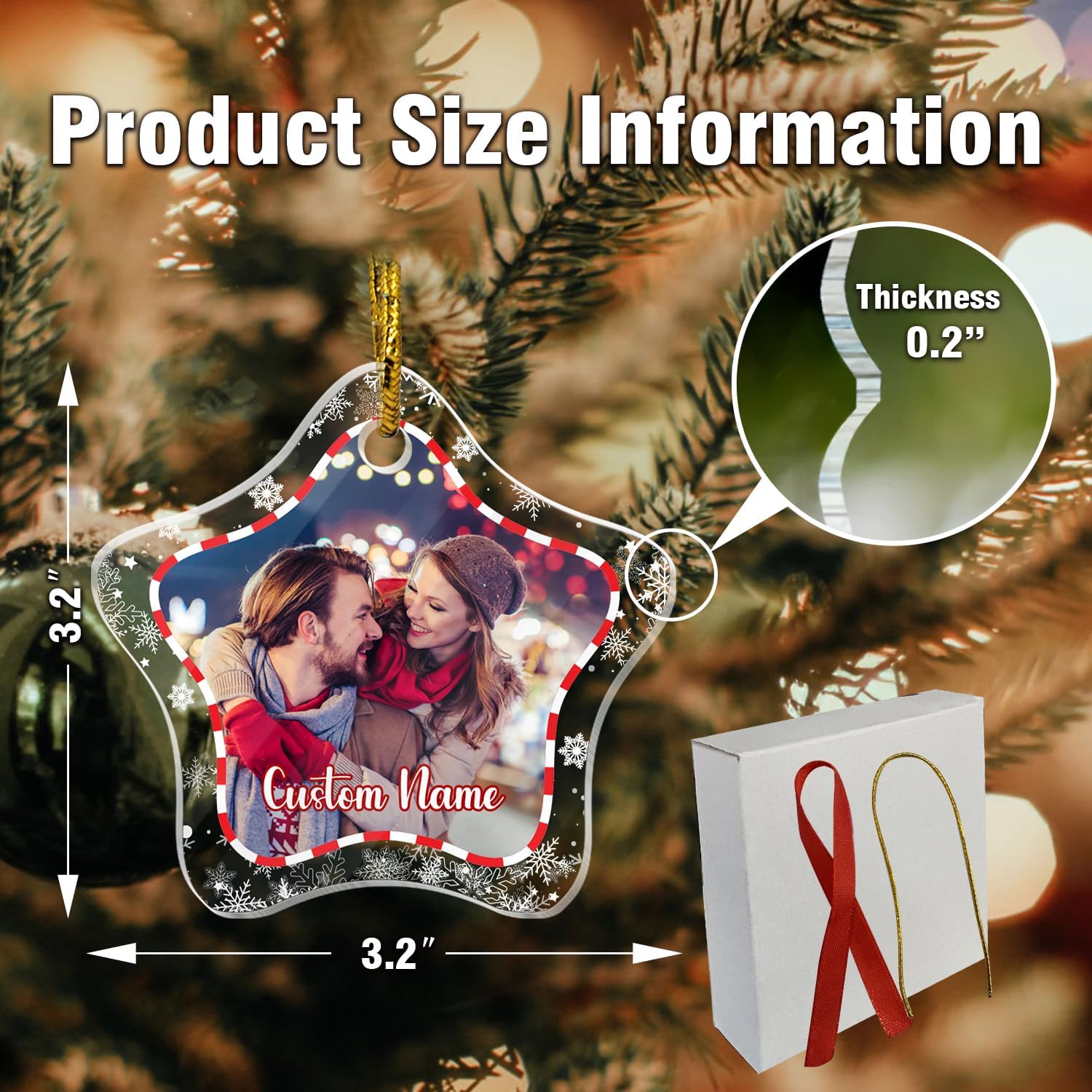 - 🎄Personalized Crystal Photo Ornaments --- Let your special memories live forever! You can add photo of yourself with your family, friends, or anyone close to you, along with any text you desire, to the crystal pendant, and we will customize it specifically for you.