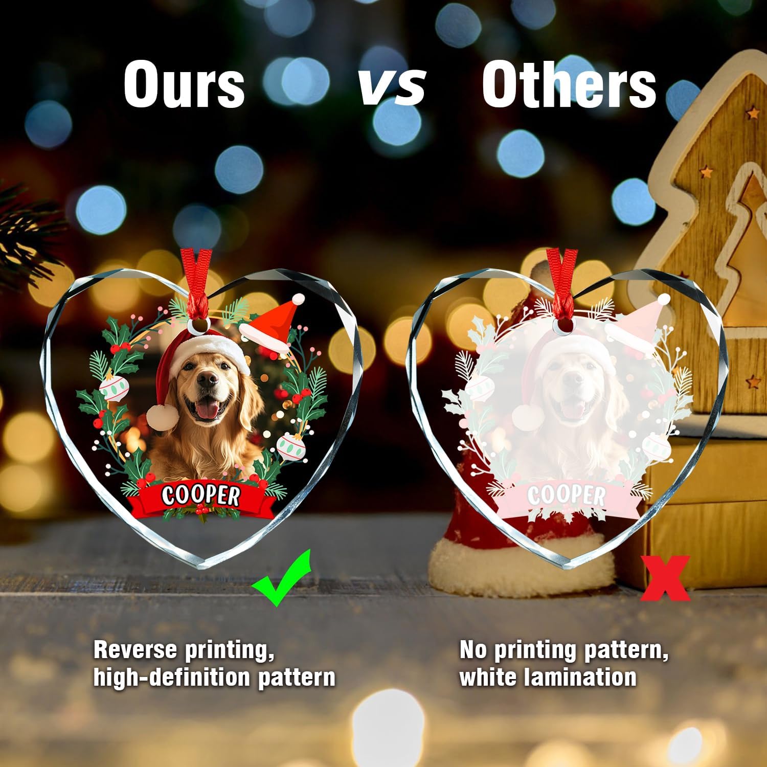 Personalized Photo Ornaments, Custom Heart Glass Christmas Tree Ornament, Custom Crystal Decoration Gifts with Text and Photos