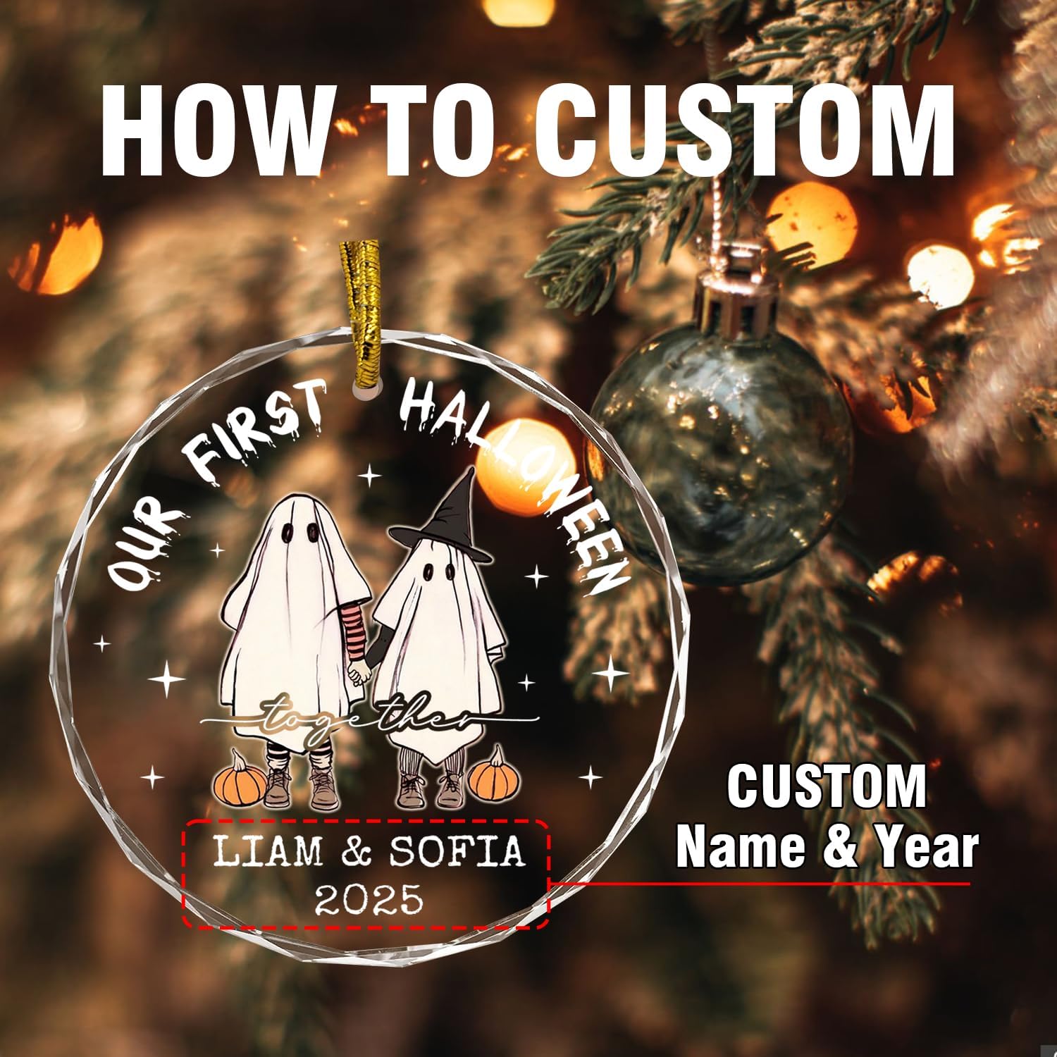 First Halloween Married Ornaments, Custom Couple Halloween Ornament for Couples, Newlywed, Mr & Mrs Ornament, Spooky Glass Hanging Decor, Spooky Pendent, Ghost and Pumpkin Gifts