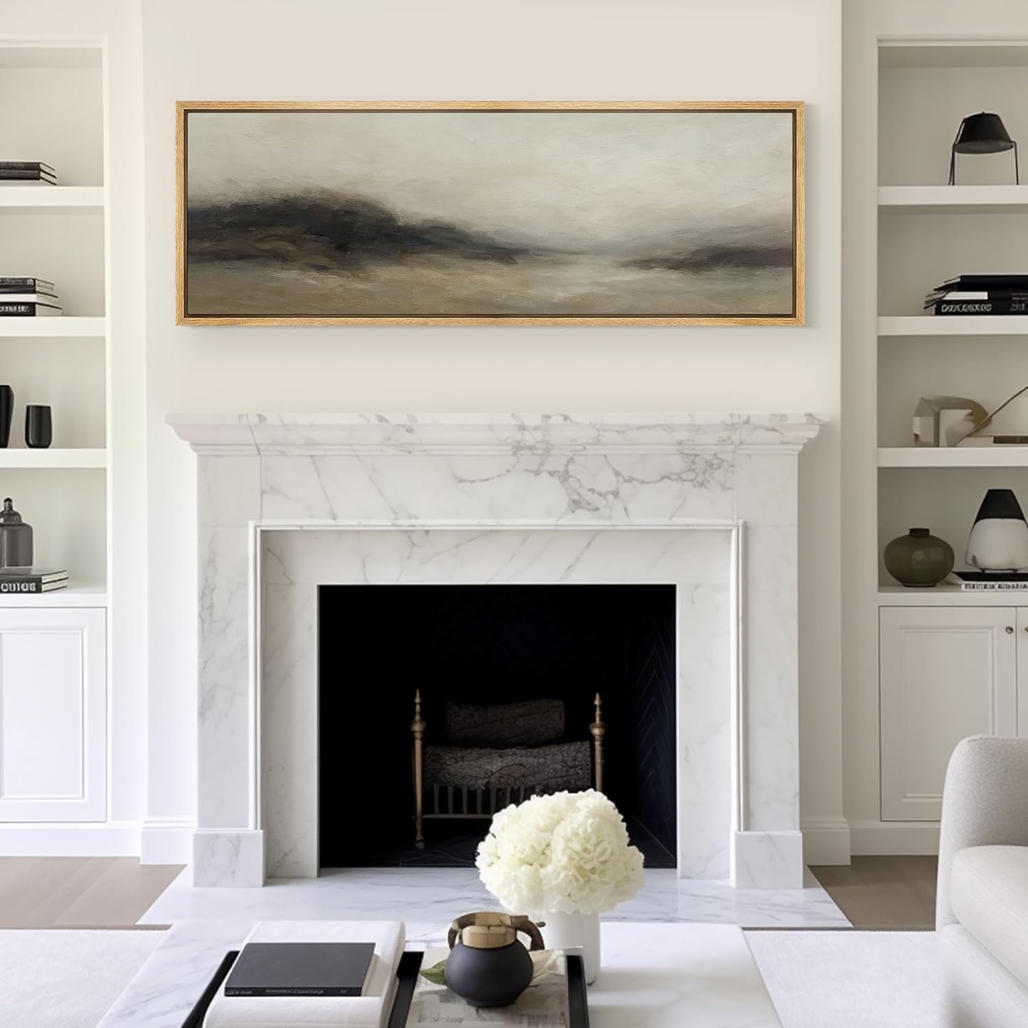 MUDECOR Large Framed Canvas Print Wall Art Foggy Mountain Horizon Landscape Neutral Tones Abstract Illustrations Decorative Colorful for Bedroom - 60"x20"