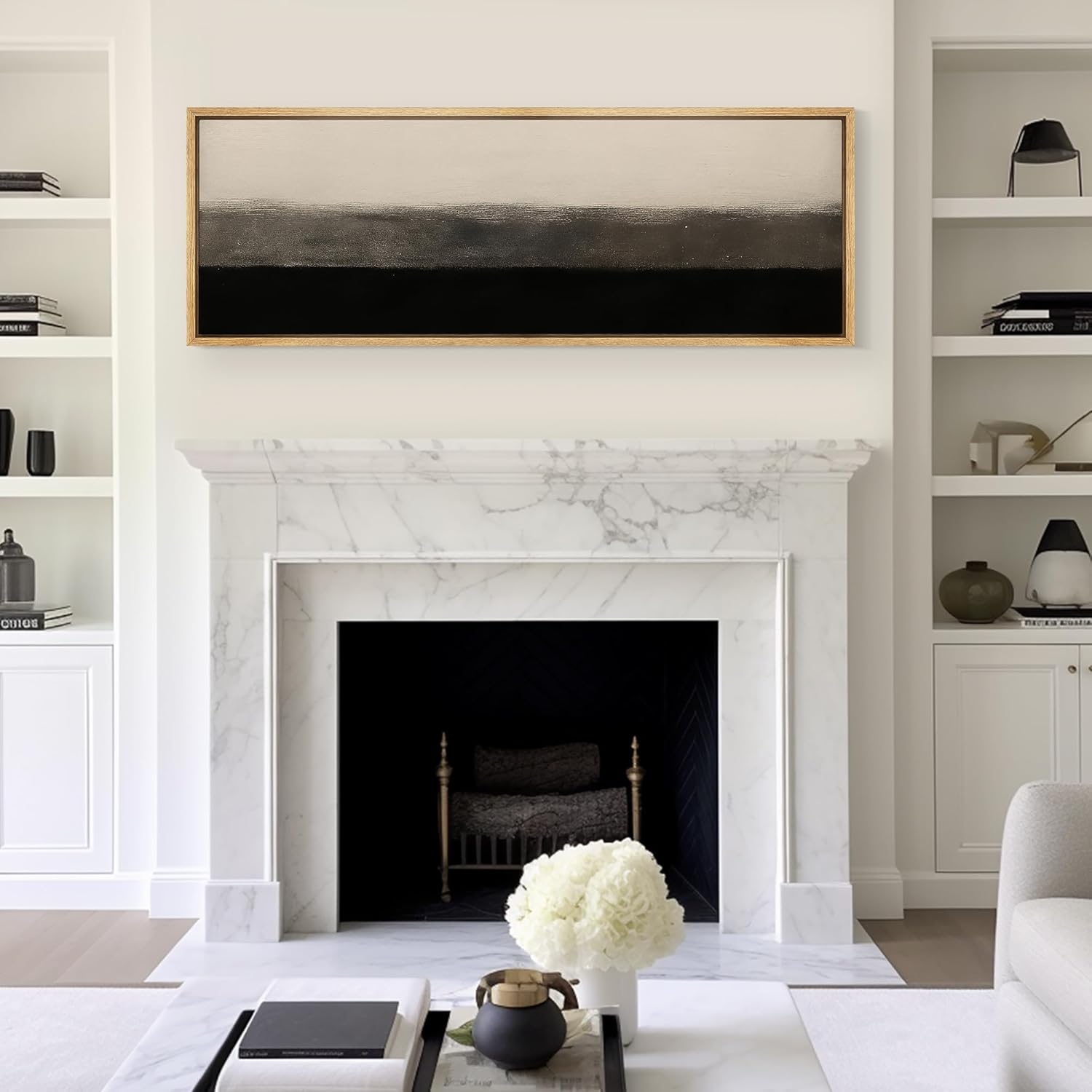 MUDECOR Large Framed Canvas Print Wall Art Minimalist Black and Beige Abstract Neutral Tones Modern Illustrations Decorative Colorful for Bedroom - 60"x20"