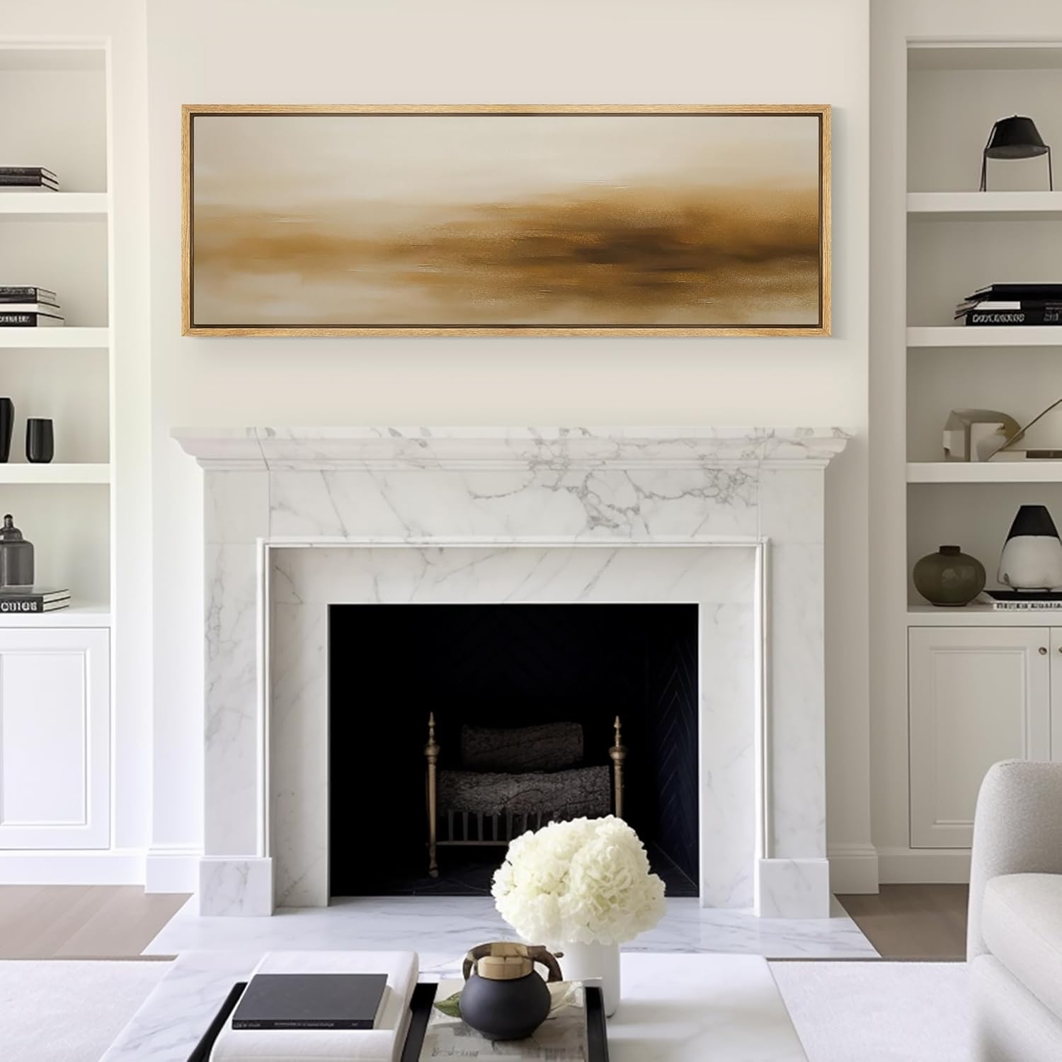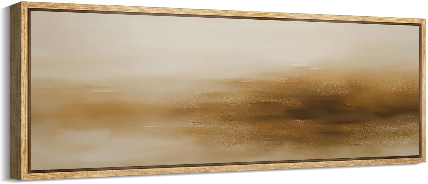 MUDECOR Large Framed Canvas Print Wall Art Minimalist Golden Brown Abstract Modern Neutral Illustrations Decorative Colorful for Bedroom - 60"x20"