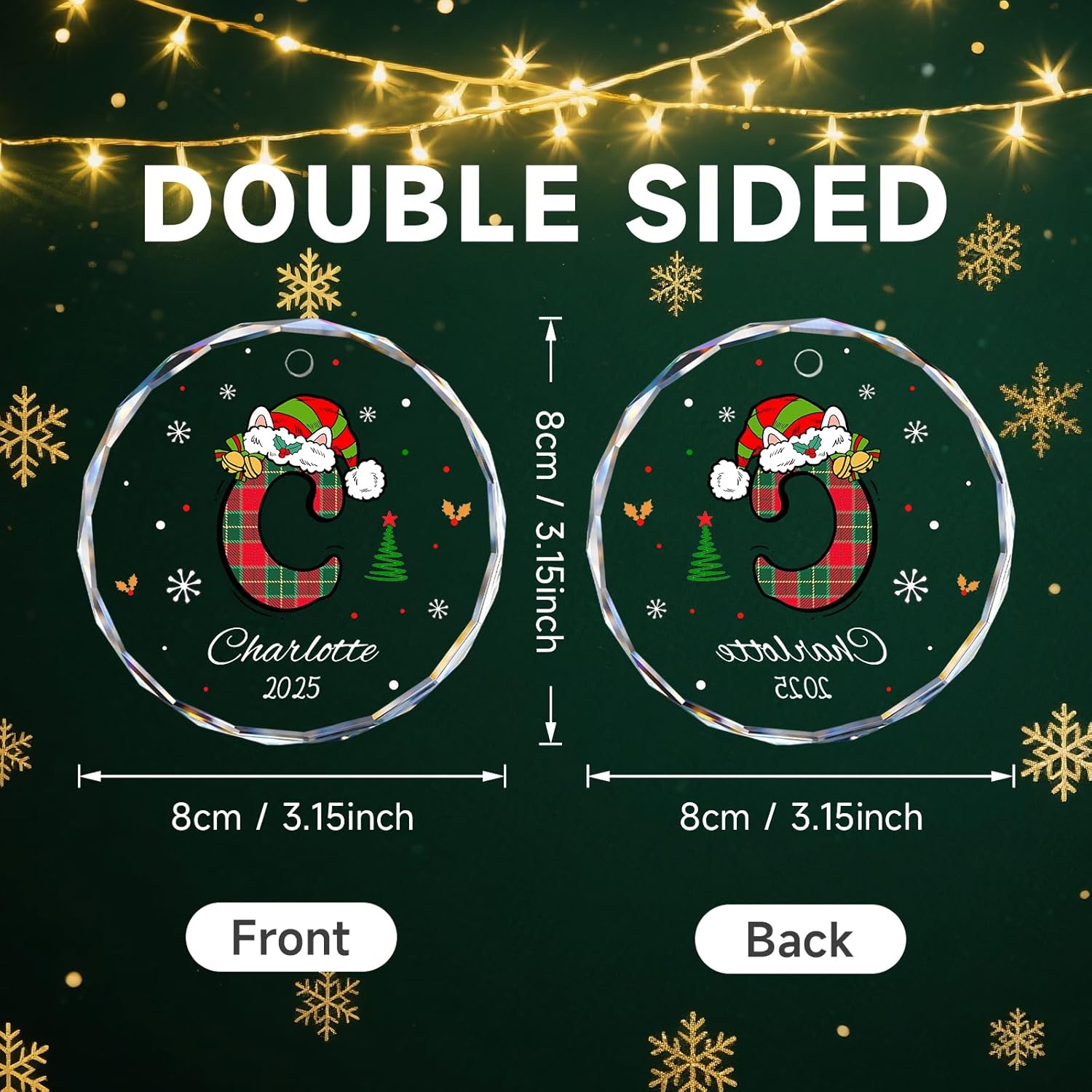 - CUSTOMIZABLE CHRISTMAS TREE DECOR: Enhance your holiday decor with our Christmas initial ornaments. The name ornaments design can be part of a set of Christmas ornaments with initials, you can use this Custom Initial Ornaments as a decor item in your Christmas Tree, Stocking, Gift Card. These initial Christmas tree ornaments are a wonderful way to celebrate each family member uniquely.